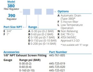 390型不锈钢调节器专为要求要求稳定的准确压力调节和高流量的应用而设计。390型压力调节器(AFR)由耐腐蚀316L SS制成,使其适用于海上和其他恶劣环境。最小的空气消耗导致了低的所有权成本。大型搬运确保了稳定且可重复的输出压力,即使在大容量阀门执行器的宽量压力变化期间也是如此。超大阀帮助单位实现高流速,压降最小。390型压力调节器可提供ATEX和EAC TR-CU认证。请参阅我们的380型AFR,以添加集成过滤器(5或40微米)。
